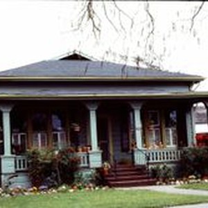 Slide, color transparency: Bungalow at 742 Orchard Street, Santa Rosa, California, 1976. Built in 1910.