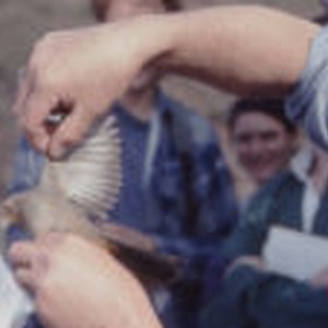 An instructor explaining Brown Towhee to the Bernard Field Station.