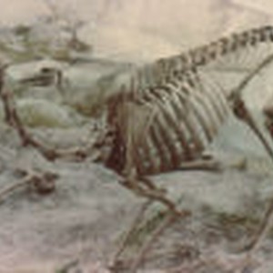A skeleton of a species of camel that lived during the Miocene epoch.