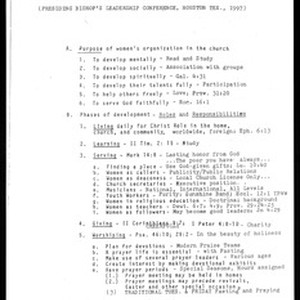 Church of God in Christ (COGIC), Department of Women, leadership conference syllabus, "Empowering the church for worldwide ministry", Houston, Texas, 1997 January 7-9. [Description English/roman)]