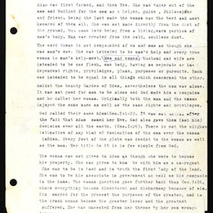 Typed and handwritten manuscript for a sermon “She shall be called woman”, [s.d.]. [Description English/roman)]