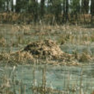 A muskrat house sitting in the middle of a river in Black Point.