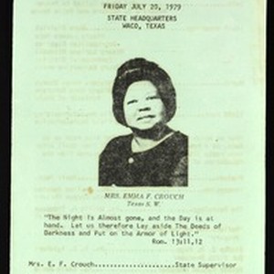 Annual women's day program, "The night is almost gone, and the day is at hand", Texas southwest, Church of God in Christ, Waco, Texas, 1978 July 20. Includes handwritten notes. [Description English/roman)]