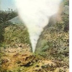 Photo--hand colored photo: Steamboat Geyser. "The Geysers" Sonoma County, California. Northwestern Pacific Railroad. 1913. Handwritten message on back. Postcard made by Edwin H Mitchell of San Francisco. One cent postage stamp.