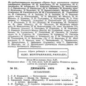 Путь, № 31 (Декабрь 1931)