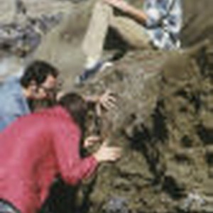 Students Mary Moore, Don Atkins, and Jan Marion study the rocks at Dana Point.