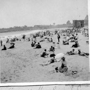 Photo--black and white: Sisters Cora L. Miller (Elvy) (b.1893) and Hazel Odetta Miller (blackesley, Frazee) (b 1895) at the Santa Cruz beach in 1908. Cora and Hazel were granddaughters of Otis and Harriet Allen.