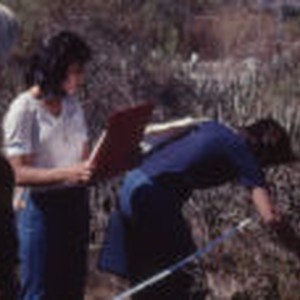 Lab II students working on project at the north end of Bernard Field Station: Amy Howell, Maria Dorado, Debra Salaig.
