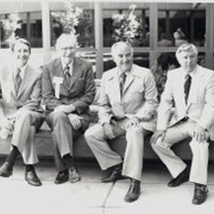 Photo--black and white: Palm Drive Hospital 510 Petaluma Ave. Sebastopol. Dedication of the New Palm Drive Hospital. Congressman Don Clausen third from left, and right, Al Carrion, hospital administrator.