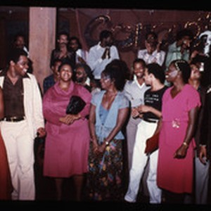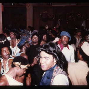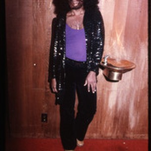 Image from a collection of 35mm photographic slides depicting nightlife events, circa 1970-1977, including images of a Sylvester concert and what may be Halloween 1977. The images predominantly depict Black performers and attendees, including people in costumes and drag. These slides were salvaged by the donor, Deborah Deegan.