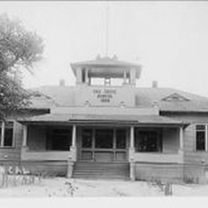Postcard--photo--black and white: Oak Grove School in Graton, California circa 1909. Oak tree to left.