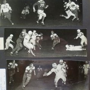Photo--Black and white: Analy High School Football fall1951. Three photos of Analy vs Petaluma in a night game Friday, October 19, 1951.