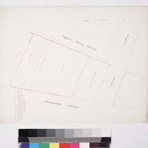 Upper Main St. to Alameda St. south of Virgin St., showing lot owners, courses, distances; color highlights, minor hachures. Alt title supplied by cataloger.