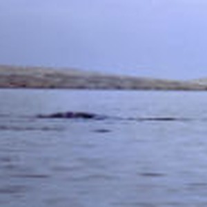 Two whales swimming near the surface of the water at Scammon's Lagoon.