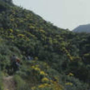 Scene of yellow flowers on the Malibu coast at La Jolla Canyon.