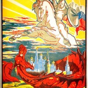An anti-Bolsheviks poster. Captions read, "Za edinuiu Rossiiu. Plotnym zmeinym kol'tsom okhvatil bol'shevizm serdtse Rossii / За единую Россию. Плотным змеиным кольцом охватил большевизм серце России", meaning, "For the united Russia. Bolshevism besets the heart of Russia with the thick snake ring". [Description English/roman)]