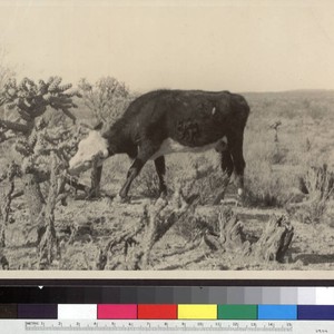 Not in the desert garden. The label that accompanies this photo in the album reads "Cow feeding on cactus."