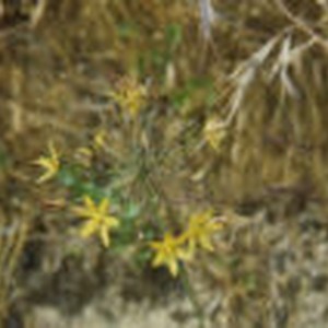 A long green stem branches out with brown bulbs and yellow flowers at Johnson's Pasture.