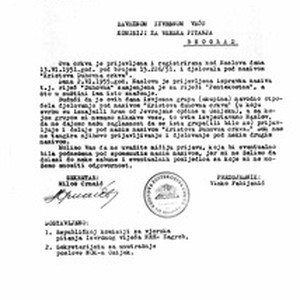 A letter from the Pentecostal Church of Christ in Osijek, 14 November 1960, to the Federal Executive Council to the Commission for Religious Affairs, Belgrade. [Description English/roman)] Pismo, Kristova Pentekostna Crkva, Osijek, 14. studeni 1960. godine, Saveznom Izvrsnom veçu Komisiji za Verska Pitanja, Beograd. [Description (original non-English/roman language/script)]