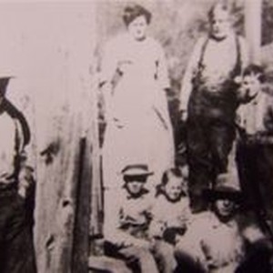 Photo-On the porch standing: Alice Barnes, Ben Barnes, George Barnes (on step) In Front: Bud O. Barnes (standing), Leo Foster, Ruby Brandt, Henry Barnes.