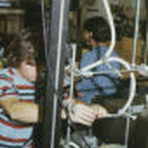 Brad Smith and Tom Prudhomme using an oxygen dissociation curve apparatus.