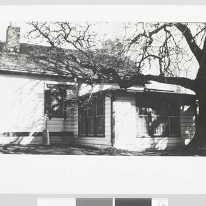 Side of cottage with large tree beside it on Jack London Ranch.