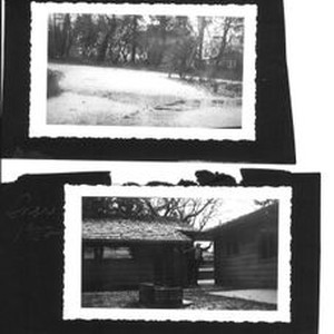 Photo--black and white: 1952 snow in Sebastopol at the house of Bunni and George Streckfus on Pinecrest Avenue. Two photos.