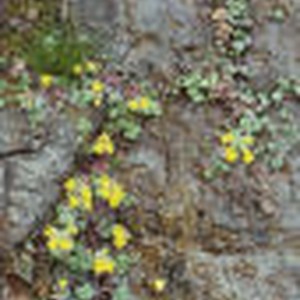 Tiny yellow flowers on a wet rock surface at Lighthouse BeachTrail.