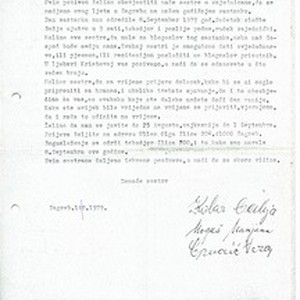 Invitation to the annual women's meeting in Zagreb that was to be held on the 8th of September 1979. [Description English/roman)] Poziv na godišnji ženski sastanak koji se trebao održati u Zagrebu 8. rujna 1979. godine. [Description (original non-English/roman language/script)]