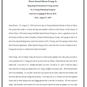 Transcript of interview of Samuel M. Young by Ladrian P. Brown, 27 Aug. 2009. [Description English/roman)]