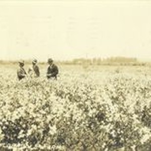 Postcard -black and white: Burpee's Floradale Farms in Lompoc, California, , three men in suits and hats in field of flowers. Written to Mr. Joseph B. Keil of Sebastopol CA. from H.F. Buckman. Postmarked Lompoc, Cal March 30 1932.