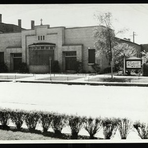 Photograph of Saint Paul Church of God in Christ, Chicago, Illinois?, [s.d.]. From Corby Bush? "Welcome to Rev. Louis H. Ford's 25th anniversary as a minister of the gospel, beginning May 14 [through?] May 27th" -- written on a sign in front of the church. [Description English/roman)]