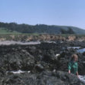A student walks through the tide pools at Cambria.