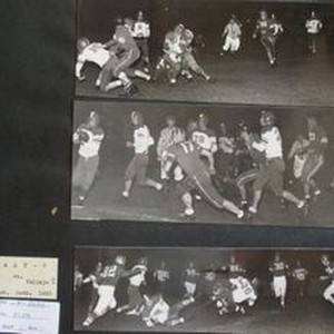 Photo--black and white: Analy High School Tigers football team of fall 1950. The Analy Tigers vs Vallejo on Friday, October 20th, 1950. Three photos of the game in play. Analy 0--Vallejo 48.