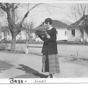 Photo--black and white: Bess (Bessie D. ) Jonas (b. June, 1897) (parents Noah Jonas &Bell Beedle Jonas). Handwritten on verso "Food Secrets & other secret war fronts. Bonnie L. Fisher Box 113 Bard. California." Possibly WW I era.