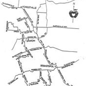 Map--black and white: The "World in Bloom" map of the "30-mile tour through the heart of the West County's famed apple orchards.