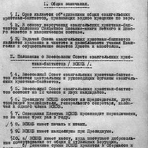 Regulations for the AUECB consisting of four parts and 44 sections, Moscow, 1948 November 20. [Description English/roman)] Положение о ВСЕХБ, состоящий из четырех частей и 44 разделов, Москва, 1948 ноября 20. [Description (original non-English/roman language/script)]