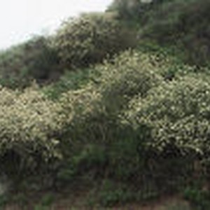 Several Hoaryleaf ceanothus shrubs growing on a hill.