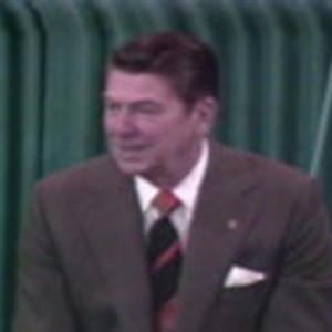Members of Modesto City Schools' Inter-High Student Council ask Governor Ronald Reagan questions in the room where Reagan holds press conferences. Part of a televised series of question-and-answer sessions with high school students conducted by Ronald Reagan as governor of California, relating to California state political issues. Produced by JRH and Associates, Inc.Additional Descriptive Notes: This program has no clear-cut beginning and end. Content begins with Reagan's voice chatting off-air (00:26), visuals begin with view of students (00:35), and Reagan begins formal remarks (00:45) followed by a superimposed program title (00:50). First question, on capital punishment (02:20), last question, about abortion, is partially lost due to dropout (29:18), but picks up again (29:31). Reagan indicates program is over (30:35), but takes another question, but footage ends abruptly before he replies.