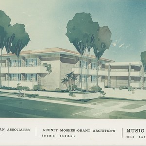 Wallace Arendt (1917-1975), Glen Mosher (1914-2013?), and Robert Grant (1928-2017) were partners in an architecture firm in Santa Barbara from the mid-1950s until the mid-1970s. They designed many residences in Hope Ranch, Goleta, and Santa Barbara, as well as civic buildings, schools, and commercial buildings. At UCSB, they designed the Marine Science Lab (1964), Music II (1969), UCen I (1966), Library IV (1977), and University House (1964). In the 1980s, the firm changed its name to Grant, Pederson, Phillips and designed the Recreation Center (1994); in the 1990s, the name changed again to Phillips Metsch Sweeney Moore Architects (PMSM) and designed the Psychology East building (2006).