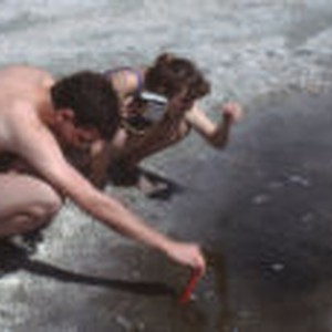 George Hammond and Peggy Fastnow performing experiment on water at Mecca Beach on the Salton Sea.