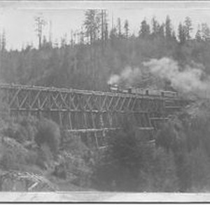 Photo--black and white: Brown Canyon Trestle built 1876. Big trestle on north Pacific coast near Occidental