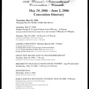 Itinerary for the 56th Annual Women's International Convention/Crusade, New Orleans, Louisiana, 2006 May 29 - June 2. [Description English/roman)]