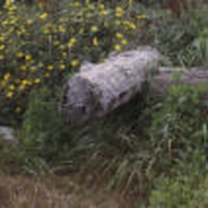 Yellow flowers near a tree trunk at South Slough. Slide mount references Grindelia spicata.