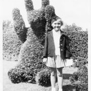 Photo--black and white: Unidentified girl of the Sebring / Allen family. Handwritten on verso "Pendray's Gardens Victoria BC Aug 15, '41."