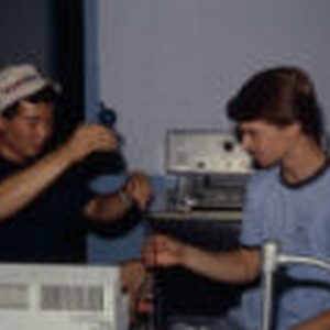 Roger Ong and Sherwood Johnson pipetting a liquid into a test tube.