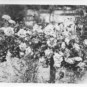 Photo--black and white: A rose bush, dated on back "Apr 28 1931."