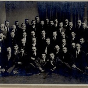 A photograph showing a group of participants of VSEkh (Vsesoiuznyi Sovet Evangel'skikh Khristian / All-Union Council of Evangelical Christians) rally (from May 27, 1927 through October 3, 1927). [Description English/roman)]