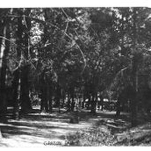 Photo--black and white: Graton Park in Graton. A gazebo and picnic tables are seen in background.