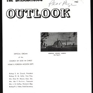The international outlook (1963 July, August, September). Official organ of the Church of God in Christ Home & Foreign Mission Department. Cover and page 6 only, with handwritten annotations. [Description English/roman)]